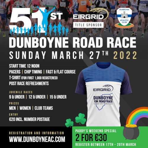 The winner of the 5k was Mathew Glennon of Mullingar Harriers with Danny Nugent of Drogheda & District AC 2nd and in 3rd was Laura Buckley of Dunboyne AC.