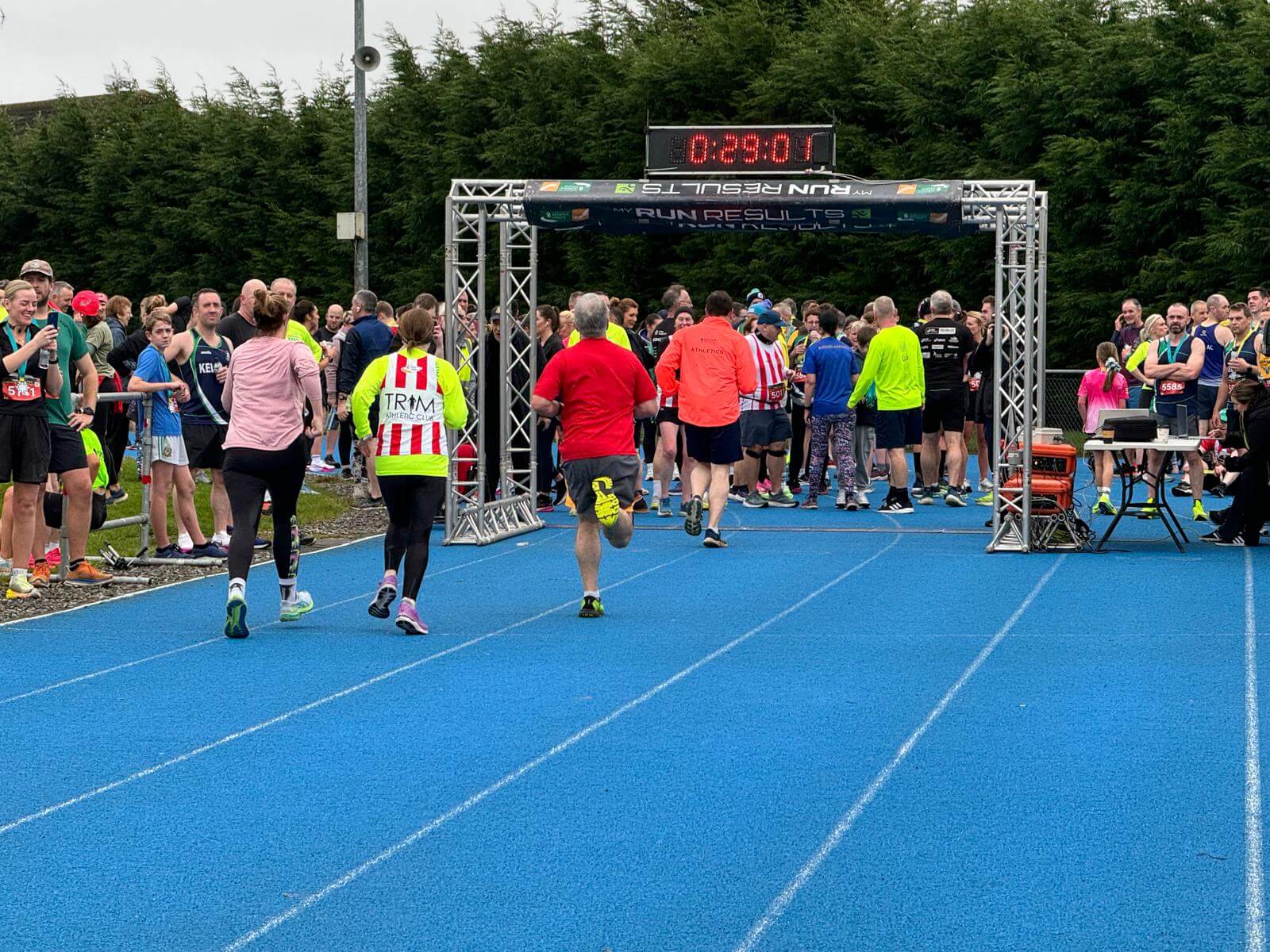 This race was keeping in line with what we have seen over the festive period. There is always something special about the Rita & Robbie 5k that gives a great festive vibe and family friendly event. The surrounding Meath clubs support the host club extremely well. Bohermeen A.C, Moynalty A.C., Tara A.C., Trim A.C., Fr Murphys A.C., Dunshaughlin, A.C, Dunboyne A.C, St Brigids A.C. and more were in support, We also had a good club attendance from neighbouring counties, Dublin, Louth, Kildare , Westmeath and more. The race itself had over 450 sign up for what is a good course. The middle section has an incline but runners get a nice 1km plus downhill to finish on Claremount Stadium's lovely blue tartan track.